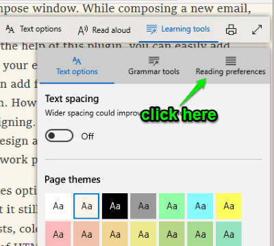 Step 4: A pop-up will open where you will see Grammar tools, Reading preferences, and Text options. Select “Reading preferences” section.