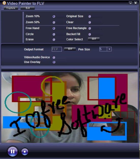 Add Shapes, Free Hand Text to Webcam Videos with Video Painter To FLV: