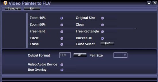 Video Painter To FLV is a free software that lets you add free hand text, rectangle, and circle to a webcam video and save it to FLV format. It’s a handy and lightweight application designed to help you modify a webcam feed and paint your imaginations on it. Video Painter To FLV is capable of capturing video from any webcam or capture card, and capturing audio from speaker or microphone.
