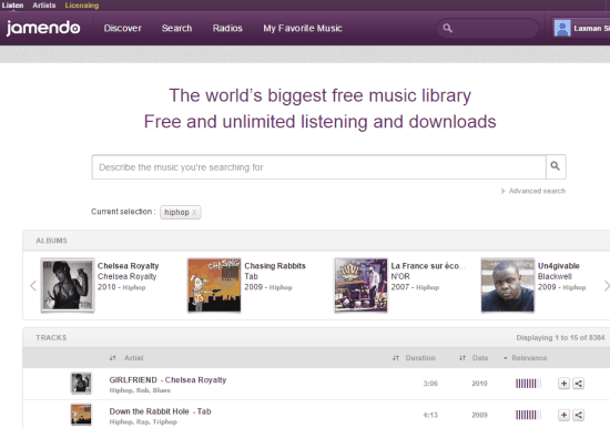 Another valuable SoundCloud alternative in this list is ‘Jamendo’ that covers around 472000 tracks. This music streaming website is great for music lovers as well as for independent artists. Where music lovers can discover and listen to millions of songs/music, independent artists can upload unlimited music and share with people. You can also download music (if feature is available for tracks) and share it legally, as its music is licensed under Creative Commons License.