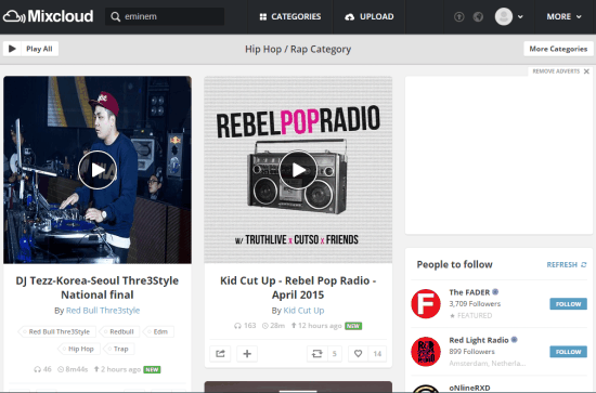 Another worth mentioning SoundCloud alternative is ‘MixCloud’. This website brings a huge collection of Podcasts, DJ mixes, and radio shows. So if you are one of those guys who mainly use SoundCloud for these features, then you will surely like this website. 30 different categories are available to explore music and mixes. You can also follow any user, add music to playlist, like, and repost any post.