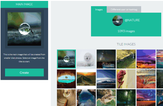 You can also use hashtag or public photos of any other user to create a photo mosaic. Unfortunately, you can’t save your photo mosaic with its free subscription. Although thumbnail size of your mosaic can be saved to PC, but to download your mosaic in high-resolution and size, you need to buy it.