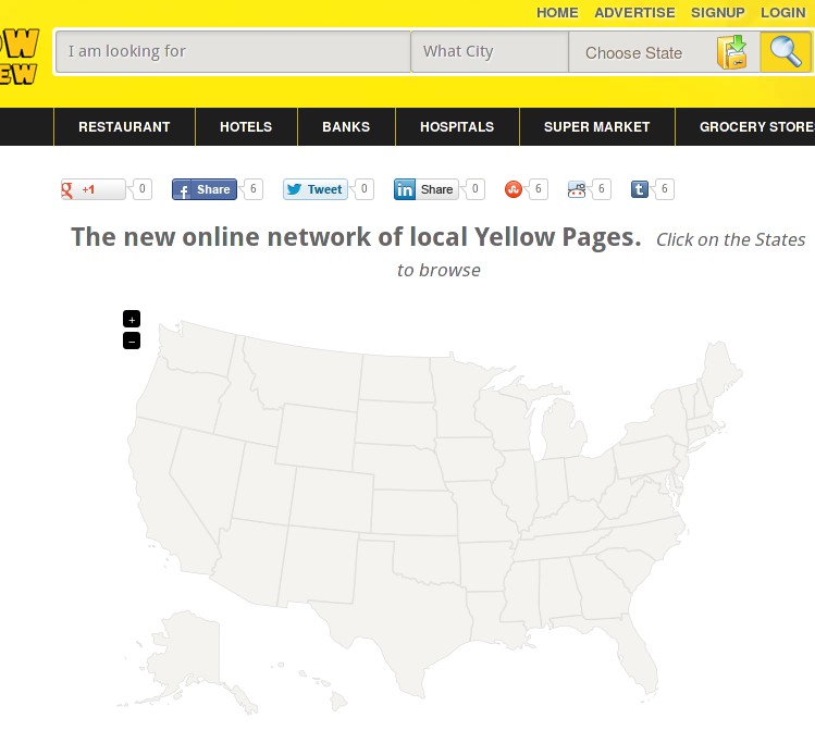 In the image above you can see the interface of yellowpagesnew. By interface we here of course mean the homepage of this free online service. Right away you can see that there are two main ways of how you can browse through the listings. Either by searching for the name of the enterprise that you are interested in using the search tool at the top, or by browsing the US with the help of the map down below.