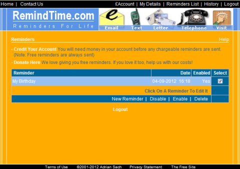 The application is very easy to use, that even novice can use this freeware. When you open the web site, the site will guide you to the page where different tabs are arranged with the particular kinds of reminders. If you want to set up a reminder for your friend’s birthday than you can click on the tab and fill in the details and the freeware will send you reminder email in your account on the scheduled date.