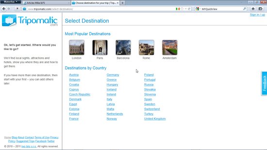 Tripomatic is a free online trip planning service for everyone. Are you planning to take a vacation in Europe and don’t want to go around in a big herd of tourists? Maybe you want to visit sites and attractions off the normal tourist route. Tripomatic will help you plan a romantic vacation for two, or a fun family vacation.
