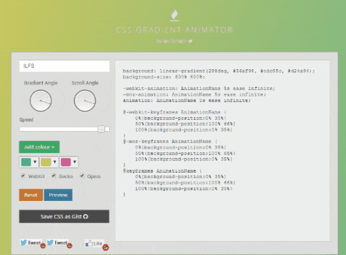 This online CSS gradient animation tool can also generate CSS code for WebKit, Gecko, and Opera. To do that, simply select the respective option and click the Preview button again to get the code.