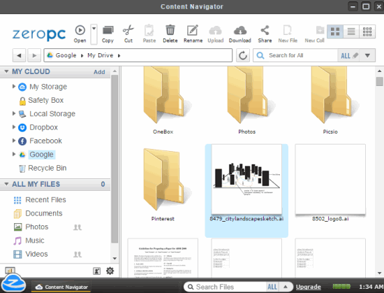 ZeroPC is the last website in this list to manage files and folders of different cloud storage services from one place. Unique feature of this website is that it lets you access and view your local storage (hard drive) files and folders within its interface.