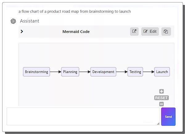 The tool takes a few seconds to generate the diagram and then shows that on the screen within the chat. It provides several options along with the diagram including quick buttons to view and copy the diagram code.