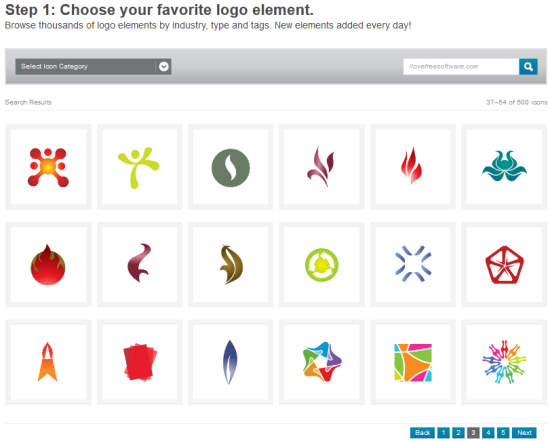 - After you have initiated the task, following interface will be shown in the browser window for selecting symbol for your Logo.