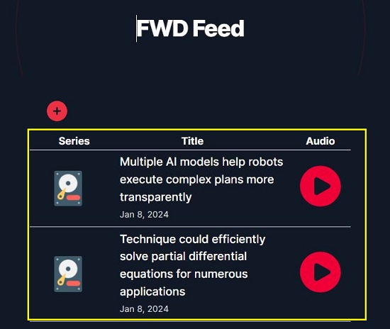 5. You will now be navigated to the ‘FWD Feed’ page where all the feeds that you subscribed earlier (in Step 2) will be available for listening.