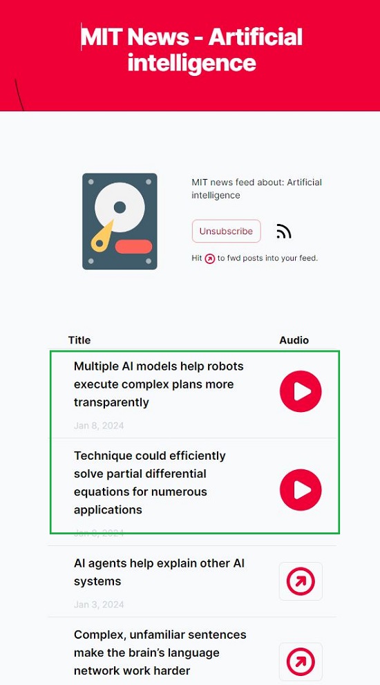6. Simply click on the ‘Play’ icon ahead of any feed to start listening to it.