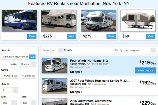 RVShare is a free website for RV rentals. The RVs are primarily listed by RV owners, who don’t use RV much, and don’t mind renting them out to get some extra money. So, instead of renting RVs from dealers at marked up prices, you can check for RV rentals on this website and directly rent RVs from owners, and save some money.
