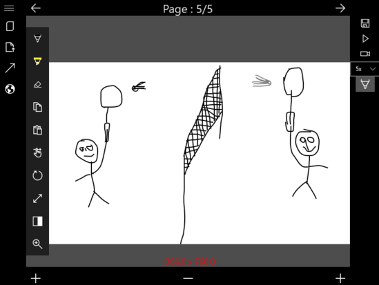 For making a flip book you need to have the same drawing available on the next page as well with only minor changes in it. This is made easy by the plus sign that you see at the bottom of the window. When pressed the plus sign will copy the entire slide to the next one. This will make it easy for you to make your next slide as everything will be copied and you will only have to make minor changes.