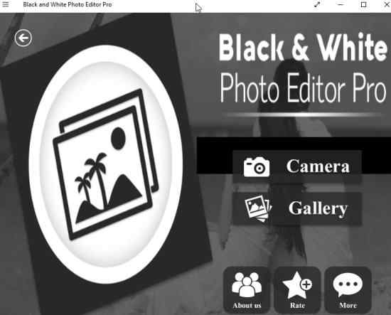 Black and White Photo Editor Pro is a free Windows 10 photo editor app to create classy black and white photos out of regular photos. The app offers lots of textures and overlays for your pictures to make them look classy. You can design your monochrome photos with these effects and can also apply lots of stickers to your photos.