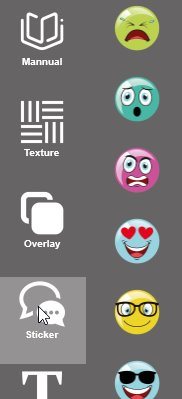Next option in the menu is stickers. You can choose from a variety of stickers and emoticons. They can easily be added to your photo and you can change there position as you like.