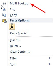 Right click anywhere in the spreadsheet and you should see an option for Multi-Lookup from the pop-up menu.