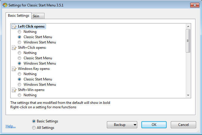 Clssic Shell start menu settings
