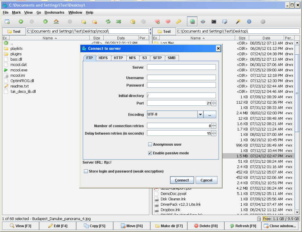 Next to these, standard file manipulations are also available, file copying, moving, deleting, directory creation, the basics, all of which are made easier by the fact that there are two panes which you can use for easier file browsing.