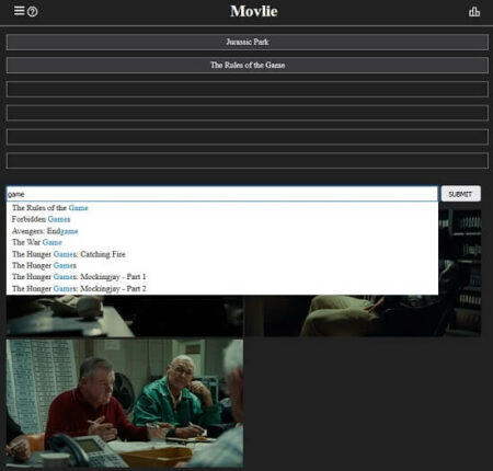 Movlie is about guessing the correct name of the movie (American) from a screen grab of its video. The guess is made by typing a few letters from the name of the movie in the ‘Search box’ and selecting any one from the list. If the guess is incorrect, the next screen grab is presented as an additional clue and so on. A total of 6 attempts are provided within which you are allowed to make the correct guess and win the game.