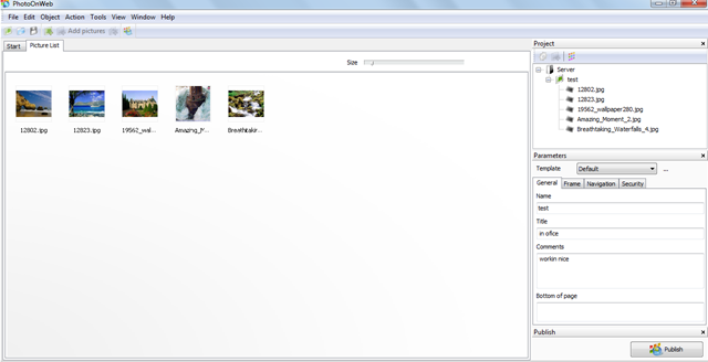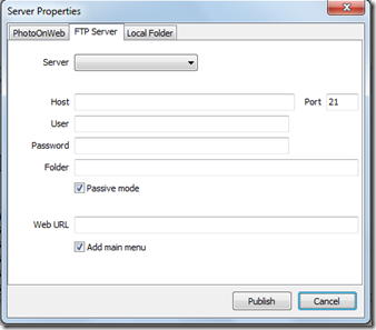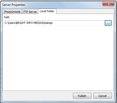 - Publish the gallery on the PC, on a FTP server, or any of the servers provided by the software
