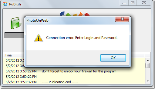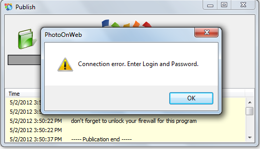For the 1st time users or in case you have no accounts linked to for publishing the album the following window appears where one needs to click on the OK button.