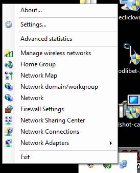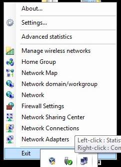 Notice in the image above that the computer screens on the icon are lit up, which means that traffic is both being sent and received. All the options in the right-click menu will directly open up various different network tool, but the one built-into Windows, practically none of them are of the application.