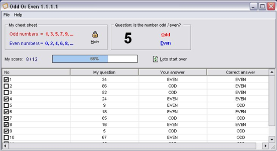 So you can simply install this free kindergarten maths software in your system, let your child try out some sample even odd problems, and later see which questions your child has attempted and how many of them were correct.