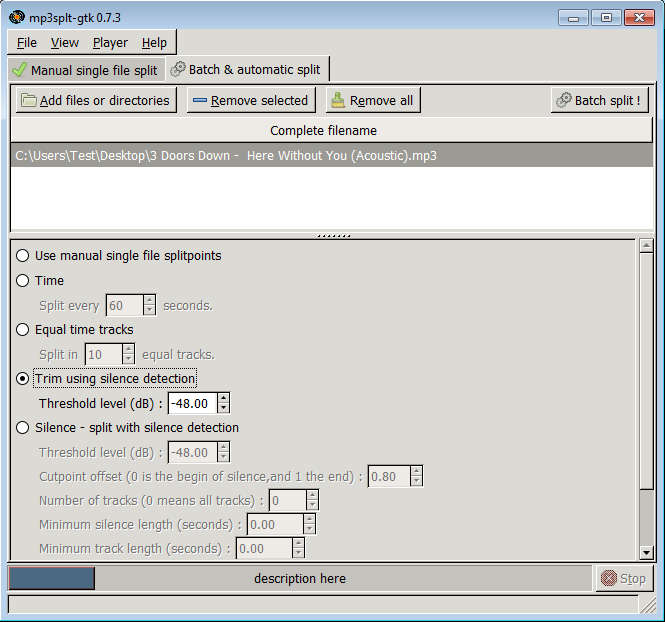 While we’re on the subject of Linux, great thing about mp3split would be that next to being able to run on Windows, it can be installed and used on Mac and Linux as well, in fact they are more native to Linux than they are to Windows, seeing how the application uses the GTK interface. This is the reason why on the image above interface of the application looks a bit bland, because some GTK apps do not have good integration with the Windows environment. This isn’t really important, what’s more important is what kind of features mp3split has, here are some of the more interesting ones.