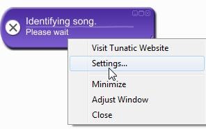 - Select the settings, as you have to decide how the Tunatic application is going to hear the song. On clicking the settings button you will get the following settings window.