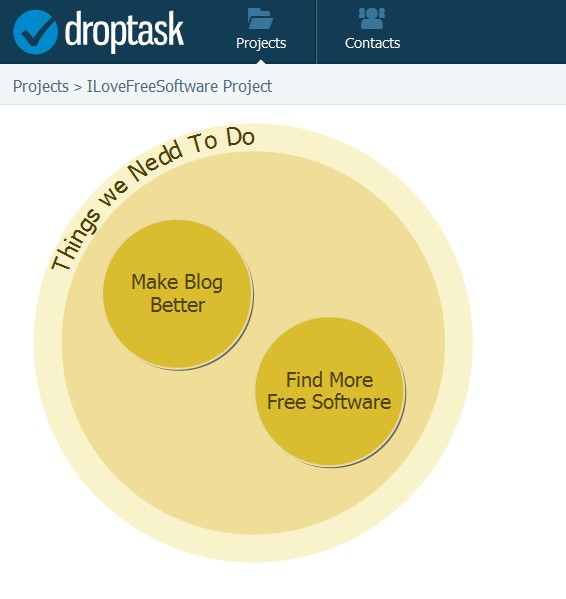 DropTask is a free online project and task management service. Unlike all the other services of this type that we have talked about before, DropTask allows you to visually play around with projects and tasks using bubbles. Each new task will be added to the project worksheet as a bubble. Inside the bubble text of what the task is about can be typed and after you’re done, the entire project worksheet can be shared with your friends.