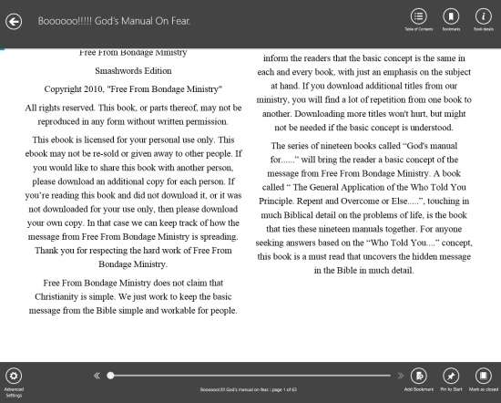 To add a bookmark in the book, click on bookmark option. It will let you resume the book from the page where you left earlier. You can even pin any book to the Windows 8 Start screen by clicking on pin option.