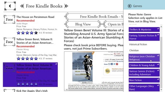 One good improvement in this Windows 8 Kindle client app is, if you are finding the list too long, then you can filter them by clicking on the Genre button. Simply click on it and you’ll get a list of genres, simply click on the unwanted genre in the list to remove the books of that category from the books list.