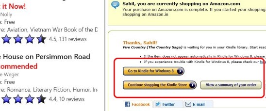 However the app does fulfills it’s purpose, and that’s good. Like I mentioned above, you have to login first with amazon credentials to download the books. Once you do that, you can simply click on the requisite free book from the list and then click on the download button in the small little browser at the bottom right of screen. Good thing is that, once downloaded, you can directly switch to the which ever Kindle reader app that you have installed in your Windows 8 devices for the purpose of reading books. The app gives you a button for doing so.