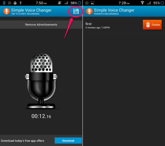 access recording in simple voice changer for android