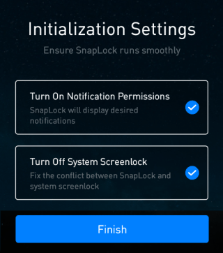 After providing the permissions, you will see the interface for personalizing the app’s user experience as per your preference. You will get following options: Allow Notifications, App Shortcuts, SnapLock Wallpaper, SnapLock Password, and Initialization Settings.