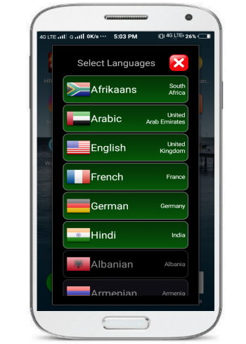 After specifying the text, tap on the “✓” button. It will then automatically translate text into multiple languages that you selected and displays the translation results right within its main screen. Long press on the translated result of a particular language to copy it to the clipboard. You can also listen to the phonetic of the translated language by tapping on the speaker button.