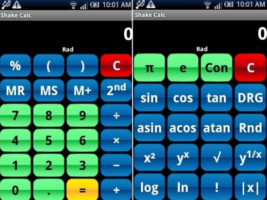 Shake Calc – Calculator is a free calculator app for Android which works with shake and touch. This Android calculator is a bit different and nice calculator app in Google Play Store. After launching this Android calculator app, you need to enter the values which you want to calculate and just shake your Android phone to get the result of the values and command entered. For e.g., if you are multiplying “6*6”, then manually enter the values in the calculator app and then shake the device to get the result as “36”. Apart from shaking feature, the calculator app also comes with advanced functions like sin, cos, tan, square, square root, log, and more. You can also change the theme of the calculator being displayed on Android screen.