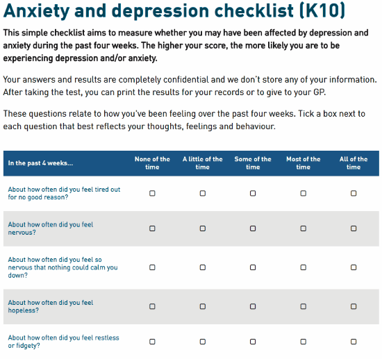 Anxiety And Depression Checklist