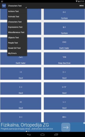 Ascii Emoticons is geared towards ASCII art that imitates emoticons. It doesn’t have as complicated art as the one that can be found in Ascii Art & Emoticons, but you can still find great ASCII art in the 9 categories that are available in ASCII Emoticons.