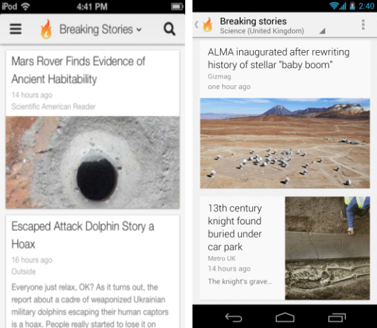 The app has a beautiful magazine-style interface, which looks sleek and works fast and responsive. The app also lets you download publications and receive content that is optimized for the app;  quite big publications offer you ability to read their magazine on Google Currents. The stories appear in boxes which are quite similar to Google now. One feature that I liked in particularly was the breaking news feature which pulls up the latest news related to the given category. All your categories and the content inside those are listed on hidden panel on the left that can be brought up with a swipe from the left of the screen.
