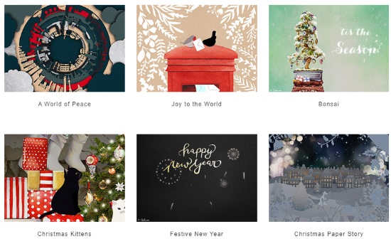 You can also explore for Christmas ecards with amazing animations. The site has a good number of greeting cards that depict different stories. You can pick any card and simply send a card by email. You can also share the card via Facebook, Twitter, and WhatsApp.