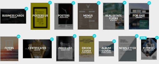 365Layouts is the last free website on my list that you can use to find different flyers and poster templates and edit them. You can fully edit the templates according to your needs and then export them as PDF. It allows you to create designs like posters, business cards, newspaper, menus, greeting cards and newsletters. You can easily create a high-resolution publication (up to 1200 DPI) and chose the format and orientation of your design as well. It supports a lot of formats like A4, A2, A1, B2, A10, a lot others. You can easily create your design from scratch or from the template and then export it. However, to use it, you will have to create a free account on this website.