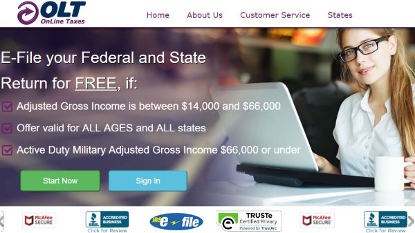 Online Taxes at OLT.com let’s you file your federal as well as state tax return for free if you qualify the conditions given on their website. Start a return by creating a account on the website. Once you create a account, you will be taken to the personal information section. Fill in all the details about yourself and move on to the income section. In the income section you can fill in details about your W-2 received from the employer, and any other income that you receive. Then move on to the expenses and credits section. After this you will be shown a summary of your federal tax return and the amount of refund that you will be getting.