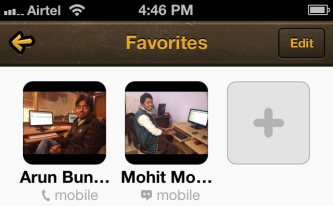 Favorites: This tab stores your favorite contacts with images. Click on this tab, then click on the green Add button and choose the contacts you want to add as favorites. Select if you want to save the contact as voice call or message. If you selected voice call then as soon as you click on the contact it will confirm that you want to call that person and then make that call for you. In case you checked the contact as message, then as soon as you click on it the message window will open up for you to type.