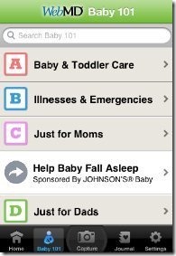 WebMD Baby is a free iPhone app which provides baby health and illness information on iPhone. This iPhone WebMD app makes it easy for you to take track health of baby when you have a new-born baby. Get detailed information on health and illness for your newly born baby and take care of his/her health and growth. Apart from that, it also lets you add information about cherished moments of your baby, like, first smile, first bath, etc.