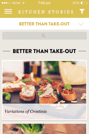 When you launch the app for the first time then you will be shown a page as shown in the screenshot below. The first section you are shown is “better than takeout” which has various mouth watering recipes in it.