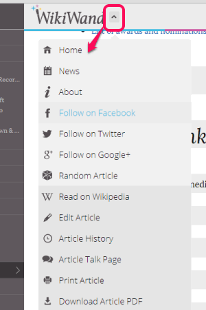 - Provides a drop down menu that helps to open your article on Wikipedia, whenever needed. Apart from this, many important options are also added in drop down menu, such as: random article, print article, download article PDF, article talk page, and article history.