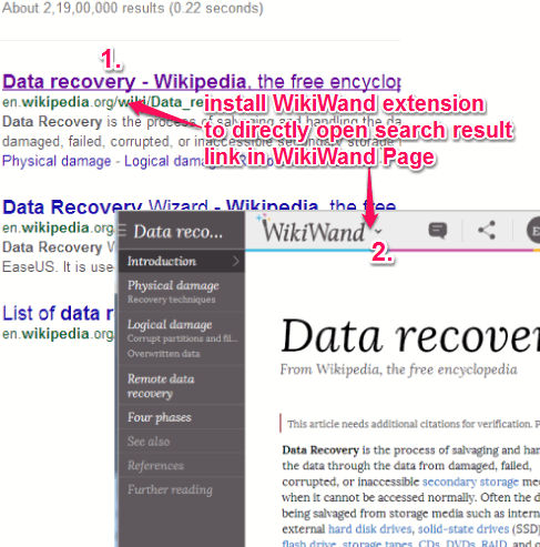 If you want, you can also download extension of this online tool. Its extension is available for all modern browsers, like Firefox, Chrome, etc. Benefit of this extension is that you don’t have to open homepage of this online tool again and again. Whenever you perform a search on your web browser for Wikipedia articles, you will be directed to its homepage directly from search results.