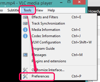 Step 1: Open your VLC player and click Tools menu. You will find Preferences option. Click that option to access it.
