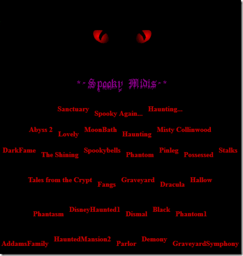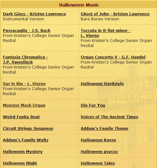 - There, you will be presented the list of available Halloween music tracks for that category. Then, click on any song-link to play it in a new window.